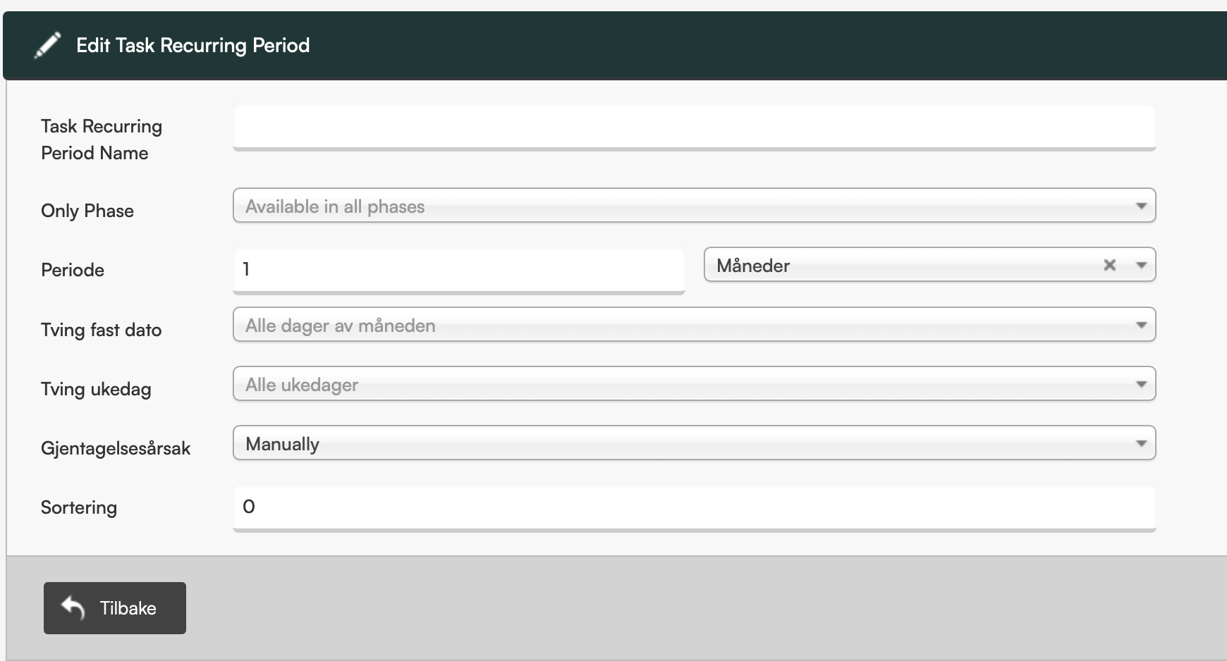 - Legg inn ønske triggerdato for gjentagelse, samt ønsker intervall