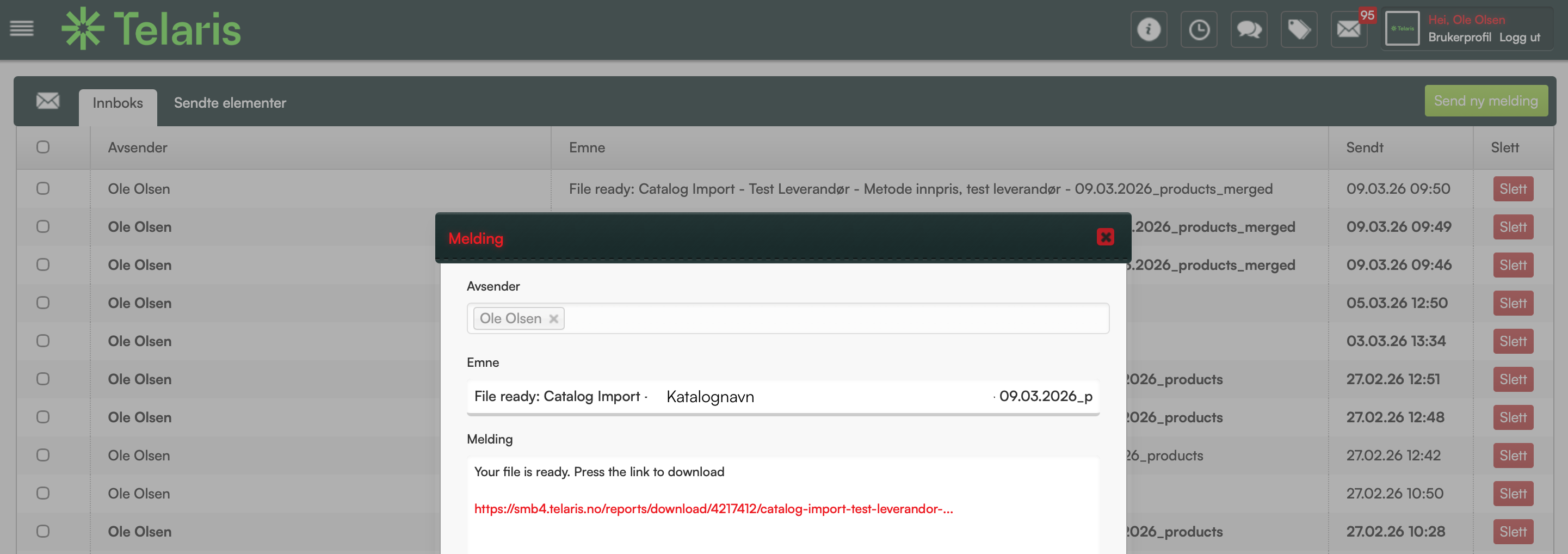 I tillegg til å få ut en forenklet rapport ved prisoppdatering, vil en avansert rapport bli sendt på melding i Telaris ved innlesning av katalog.
