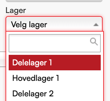 Til høyre i ordrehodet vises lager-nedtrekksmeny.