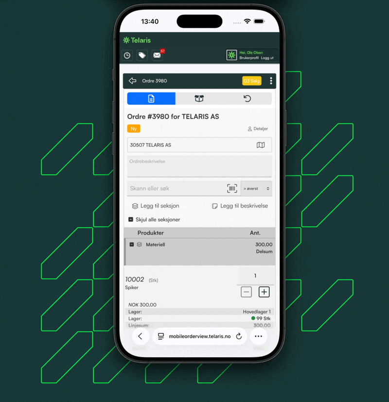 Veiledning for løsning av retur av produkter til lager fra mobilt ordreview