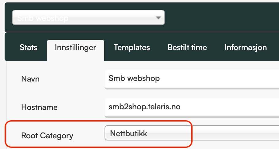 Rot-kategorien finner man da igjen fra 'Kategorier' i webshop innstillinger