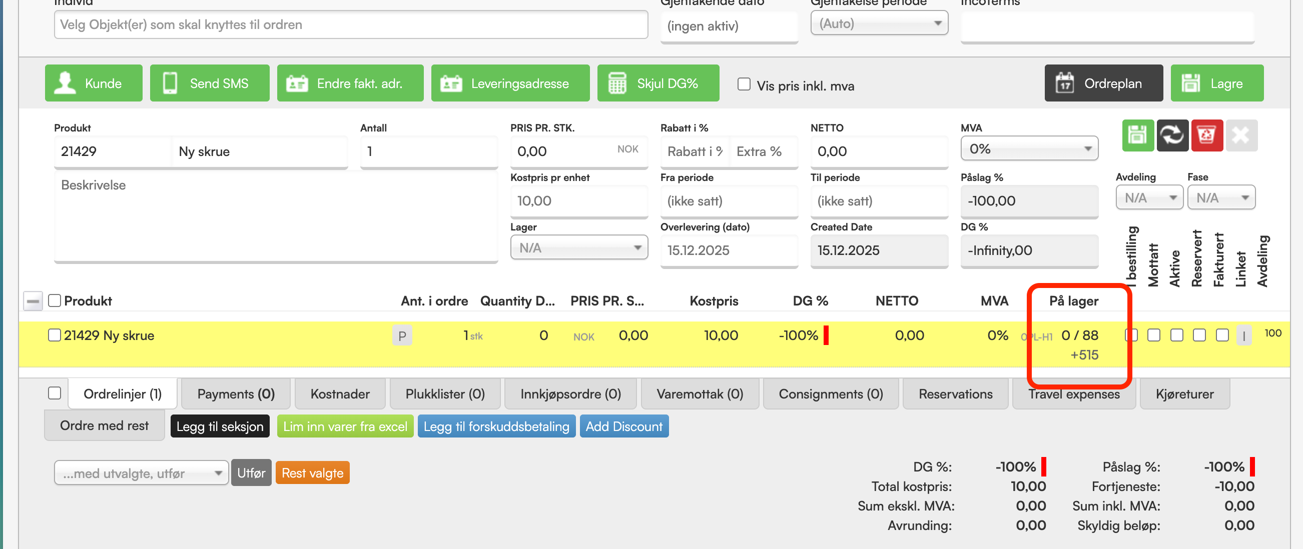 Når et slik innkjøp finnes vil det vises en plussverdi for innkommende varer.