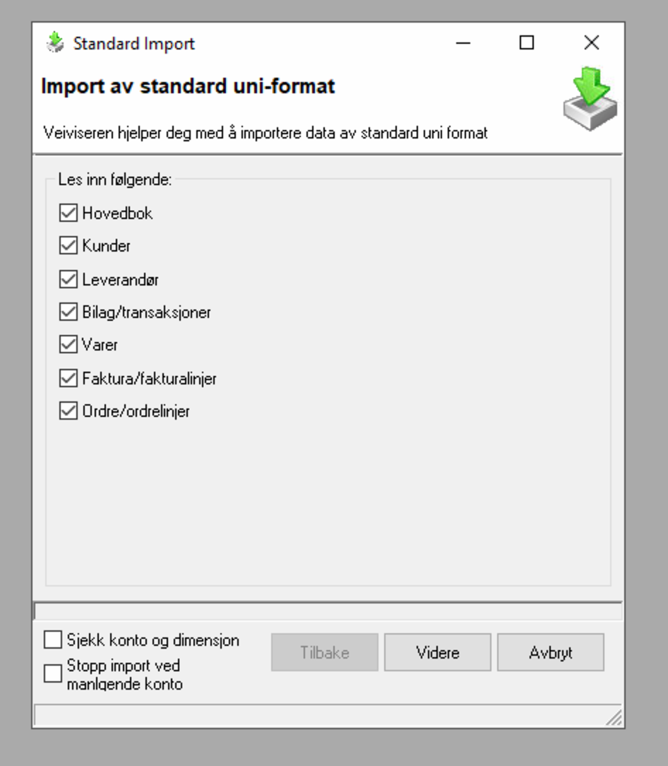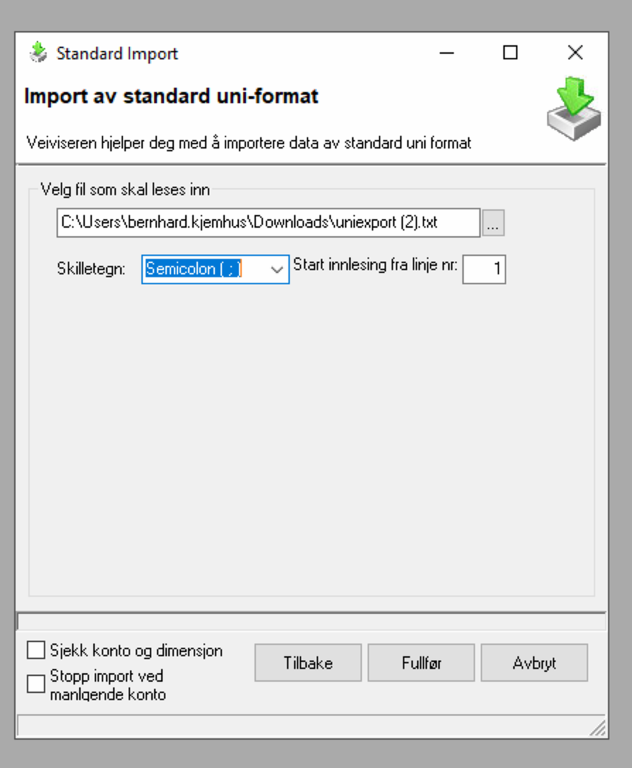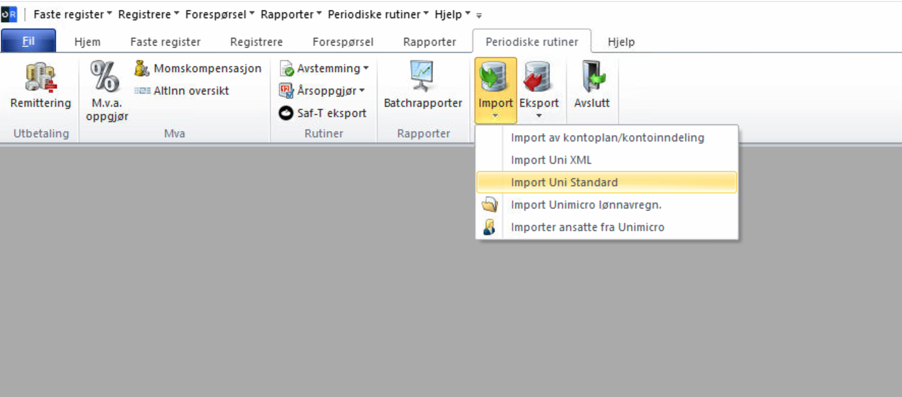 - Gå til Periodiske rutiner → Import → Import Uni Standard.